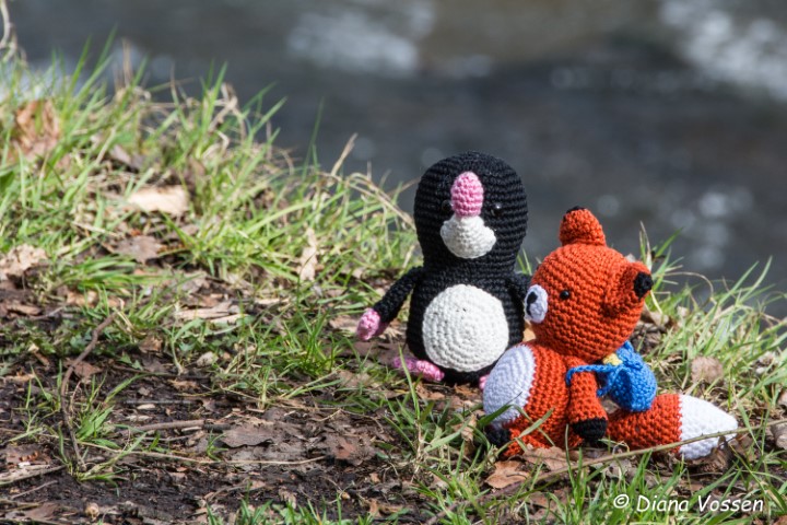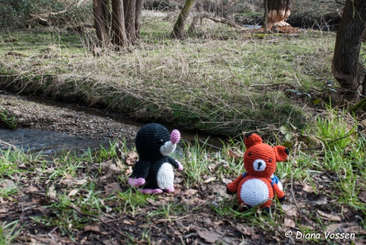 Ze wandelen verder langs de rivier. Er wonen een heleboel dieren in en om het water.