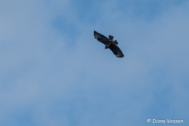 Mister Fox en zijn vriendje Mol zien een hele grote vogel. Het is een buizerd. Hij zweeft boven hun hoofd. Een buizerd is een roofvogel en eet graag een muis (of mol). Hij miauwt net als een kat. Hij heeft ook hele goede ogen. Soms hoor je hem wel, maar zie je hem niet. Een buizerd kan heel hoog in de lucht rondzweven en plots naar beneden duiken. Dan heeft hij een muis of konijntje gezien dat hij wil vangen om op te eten.